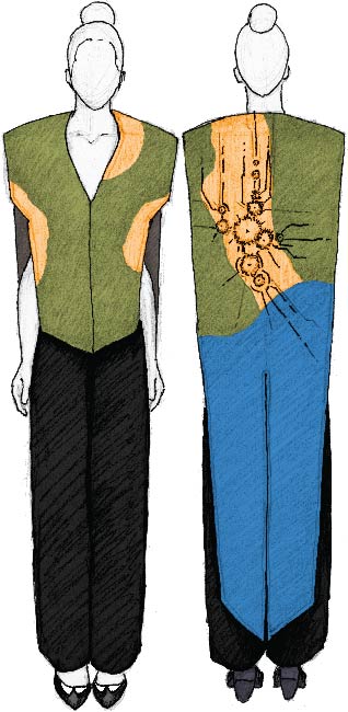 In this dystopian future we succumb to the true overlord — Nature. We will adorn our garments with its falling pieces and whatever remains of our former decadent civilization. Discarded cans of latex paint and smashed tubes of oils become a hot commodity, as they hold the power of everlasting liquid color.