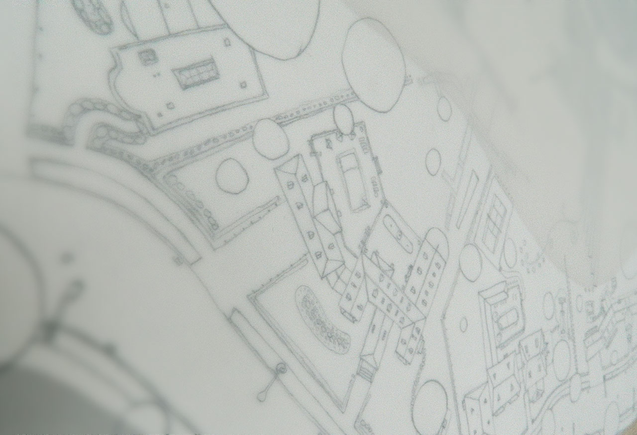 Graphite, acrylic, vellum